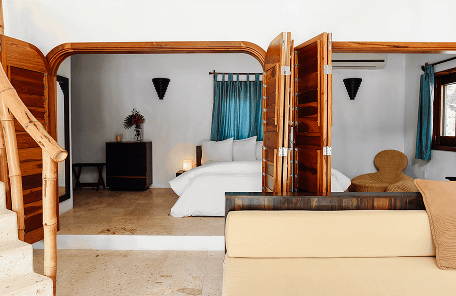 With only two on the property sharing a private pool and beachfront, our Luxury Seafront Villas offer the ultimate in intimacy and tranquility. Ideal for couples travelling together or family groups, our villas are designed for reconnection. Enjoy your secluded villa from one of several areas just for you; take in the breathtaking views of the Caribbean Sea from your bright and spacious living room or from your rooftop terrace. Each two story villa includes one bedroom and bathroom on each floor, ensuring plenty of living space for you and your group.