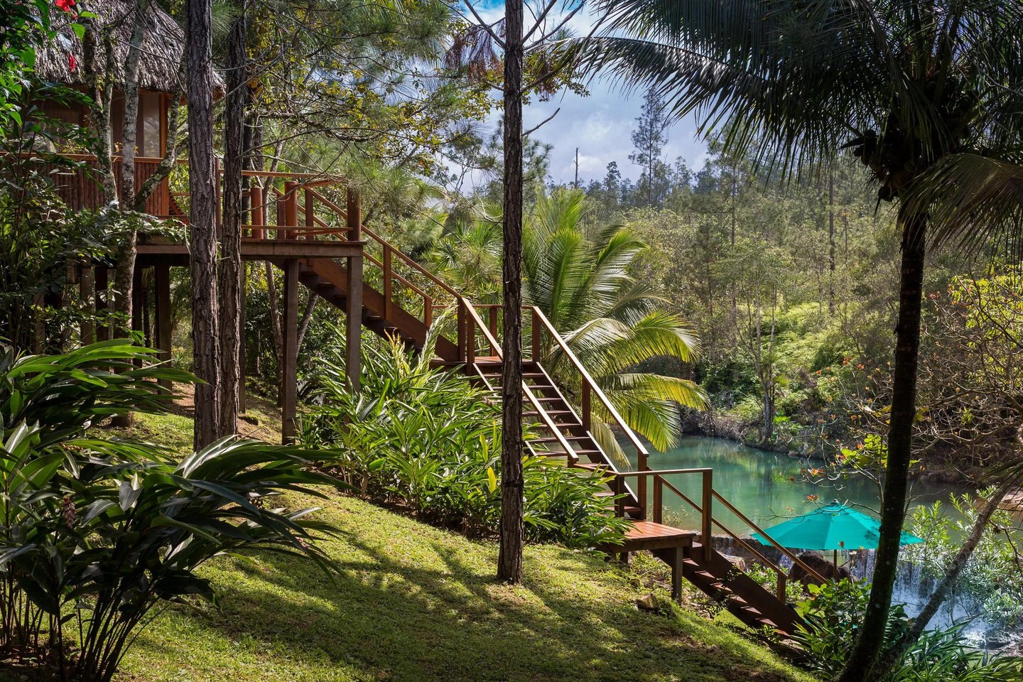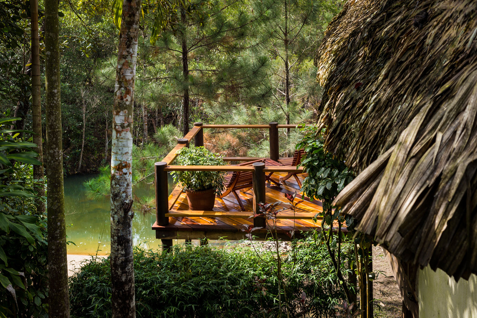Blancaneaux Lodge is a 20-room luxury hideaway where waterfalls tumble into turquoise pools above the jungle canopy. Its remote mountain setting allows guests to explore the ancient civilization of the Maya and to return to their own thatched roof dwelling, rich with Guatemalan décor and nestled in the foliage of the Mountain Pine Ridge Reserve.